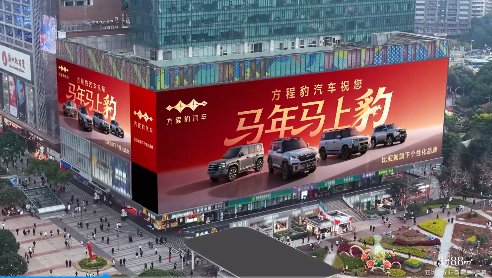 方程豹汽登陆重庆观音桥3788“亚洲之光”地标巨幕,祝您马年马上豹!